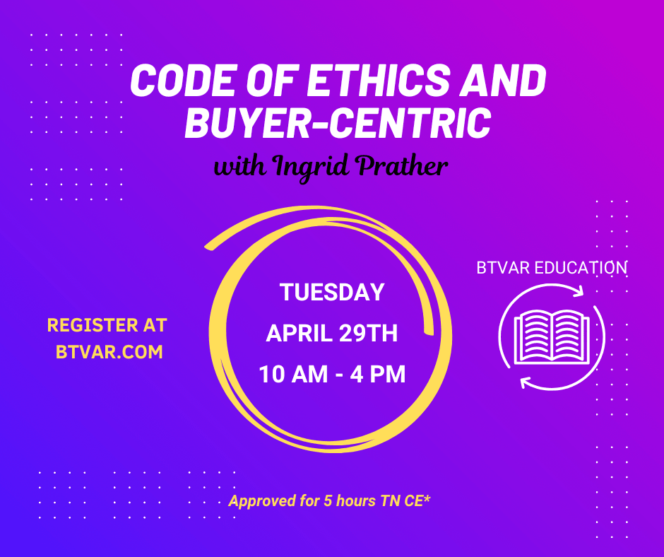 Code of Ethics (3 hrs TN CE) and Buyer-Centric (2 hrs TN CE) with Ingrid Prather