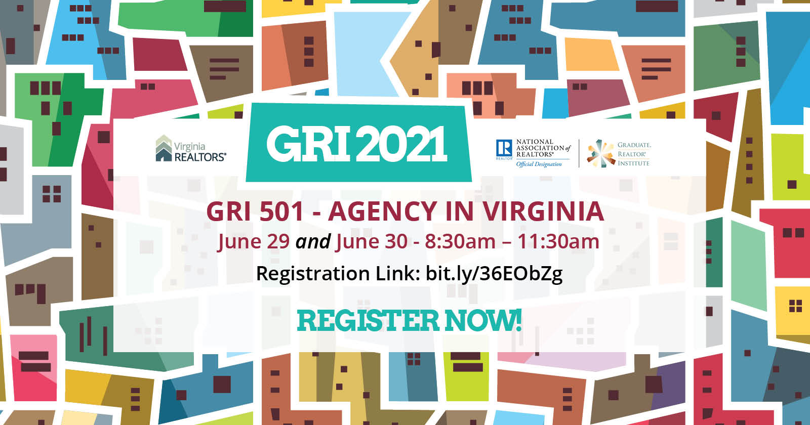 CE/PL Approved: 3 Hours Real Estate Agency and 3 Hours Real Estate Related for CE; 3 Hours Virginia Agency Law for PL